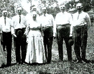 With brothers almost two decades older, Scott early on was thrust into the world to make his way. Like his father he married early. At 22 in June 1901, he wed Roberta Bryan in Walker, Georgia, She was 16. There would be no children. Before long Scott and Roberta moved to Tennessee where his brother Samuel Price was already established in a liquor business he called “The Chattanooga Distillery.” Shown below is a photo of six Price brothers standing with their mother. Scott is at far left; Samuel at far right.