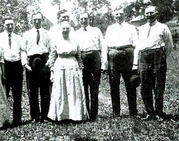 With brothers almost two decades older, Scott early on was thrust into the world to make his way. Like his father he married early. At 22 in June 1901, he wed Roberta Bryan in Walker, Georgia, She was 16. There would be no children. Before long Scott and Roberta moved to Tennessee where his brother Samuel Price was already established in a liquor business he called “The Chattanooga Distillery.” Shown below is a photo of six Price brothers standing with their mother. Scott is at far left; Samuel at far right.
