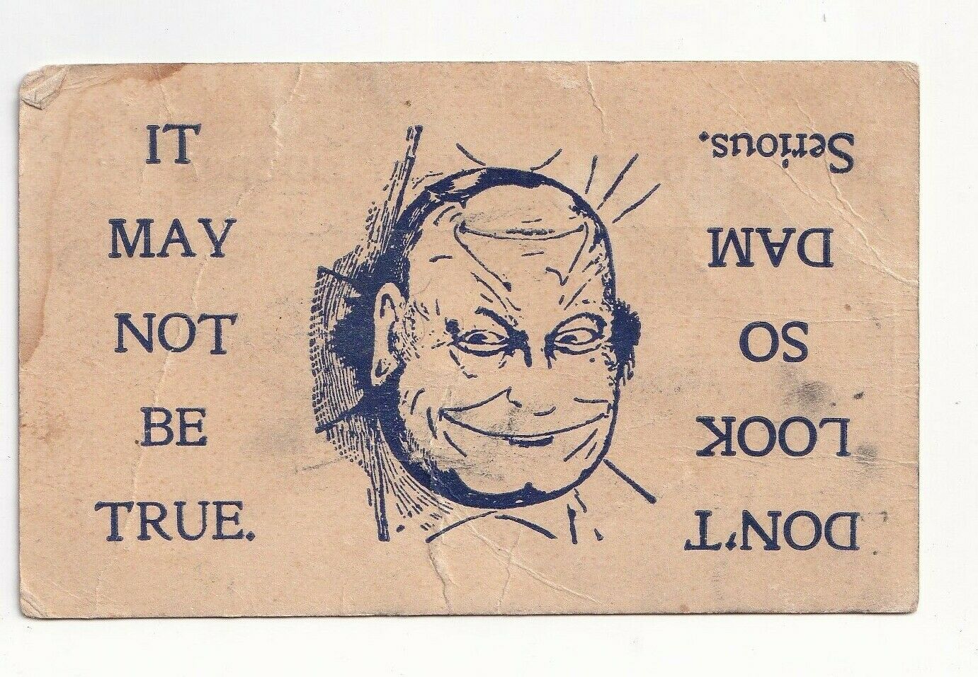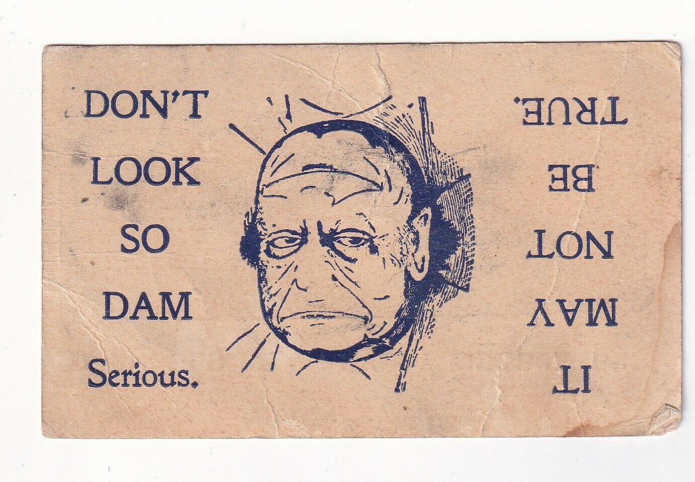 Displaying a sense of humor, the Wertheimers also issued a whimsical trade card showing a quart bottle of Old Spring with the motto, “Belongs on Every Sideboard.” Known in the trade as a “mechanical, on the flip side is a illustration of a worried man and the caption, “Don’t look so dam serious.” When turned over the man is smiling and the caption reads, “It may not be so serious.”