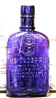 The Wertheimer liquor house in Cincinnati initially was located at 121 Produce Alley. When the volume of business at that site required more space the brothers moved to 333 Sycamore Street in 1906. Two years later a final move took the Old Spring Distilling Co. to 129 West Third Road. The company was selling its brands, “Old Spring,” “Hump-Back,” and “Old Time Gin” to the public in quart and flask sizes. These were issued in clear and cobalt blue bottles, with “Cincinnati” embossed on them.