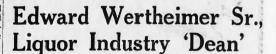 How does an individual earns the title of “Dean of the American Liquor Industry”? It helps to begin working in a distillery when you are 15 years old. It also is advantageous to have been an active whiskey man right up to your death at age 92. It also is important that during the intervening 75 years, amid tribulations and rapid change, you have maintained a quality presence in the industry. Based on those criteria, the Cincinnati Enquirer headline of April 22, 1960, above, is an accurate description of Edward “Ed” Wertheimer.