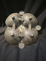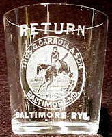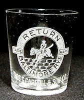 Like other whiskey wholesalers, Marks featured giveaway items to favored customers, both wholesale and retail. Below are two examples that have come to light. Below left is a crude mini jug with Marks’ name scratched in the Albany slip glaze. It is flanked by a much more elaborate mini. Note that this one advertises “3-Red-Barrels.”