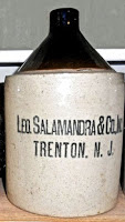 The Red Wing potteries also provided the Ladners with containers for their wholesale whiskey. As shown here, the jugs ranged in size from one to five gallons, all bearing similar labels. The Ladners were not distillers but were buying whiskey by the barrels, likely from distillers in Peoria and other Illinois locations, decanting them into smaller quantities and selling the product to saloons in Red Wing and the nearby Twin Cities, as well as pouring it over the bar in their adjoining saloon.
