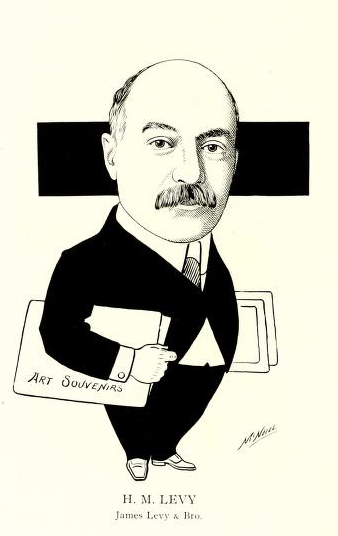 Harry Levy, however was about more than fine houses. He never forgot Harvard. In 1892 he personally paid for the attendance of a number of Cincinnati students to Harvard. Harry also helped finance and administer the local Harvard Club’s annual “scholastic field meet” for local high school students. Much of his philanthropy went to “beautifying” Cincinnati. For at least a quarter century he was treasurer of the city’s Municipal Arts Society. That work explains the “art souvenirs” folders under his arm in the caricature that opens this post. The Arts Society actively sought to make Cincinnati a more attractive city by promoting open space and public art and by working with schools to advance art appreciation.